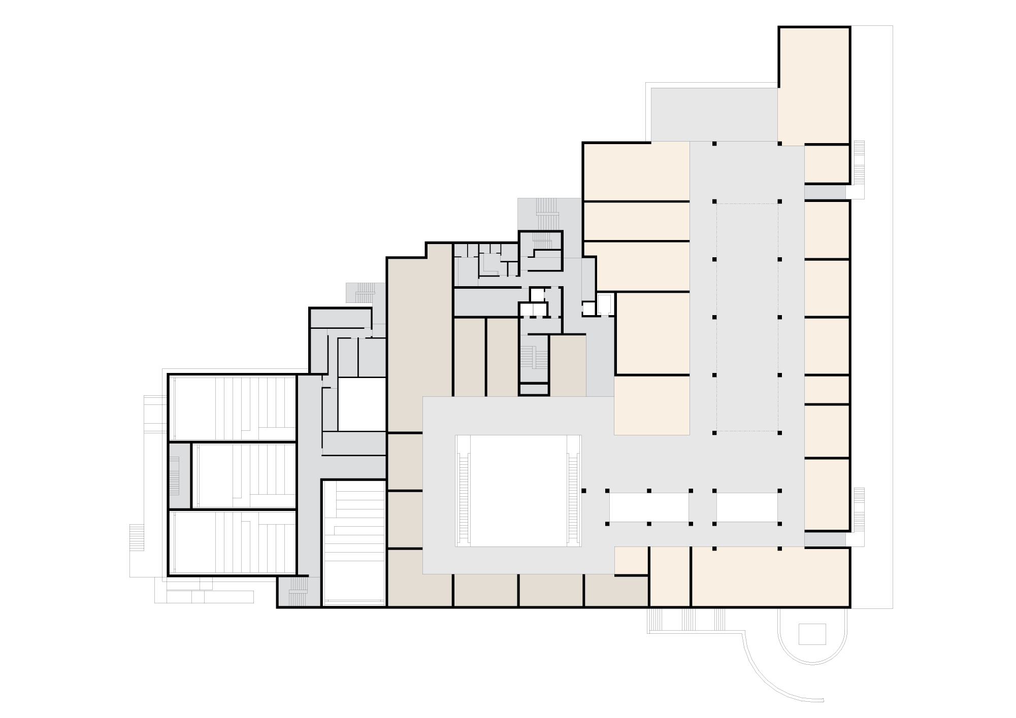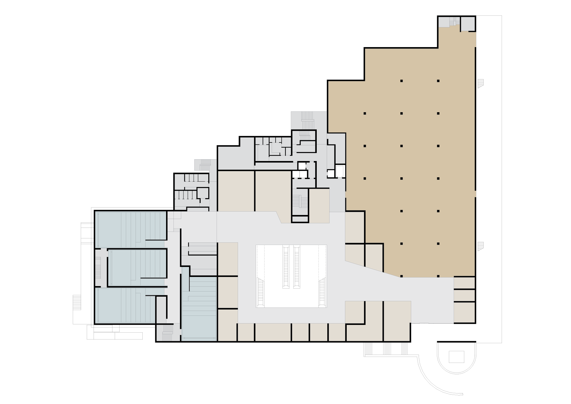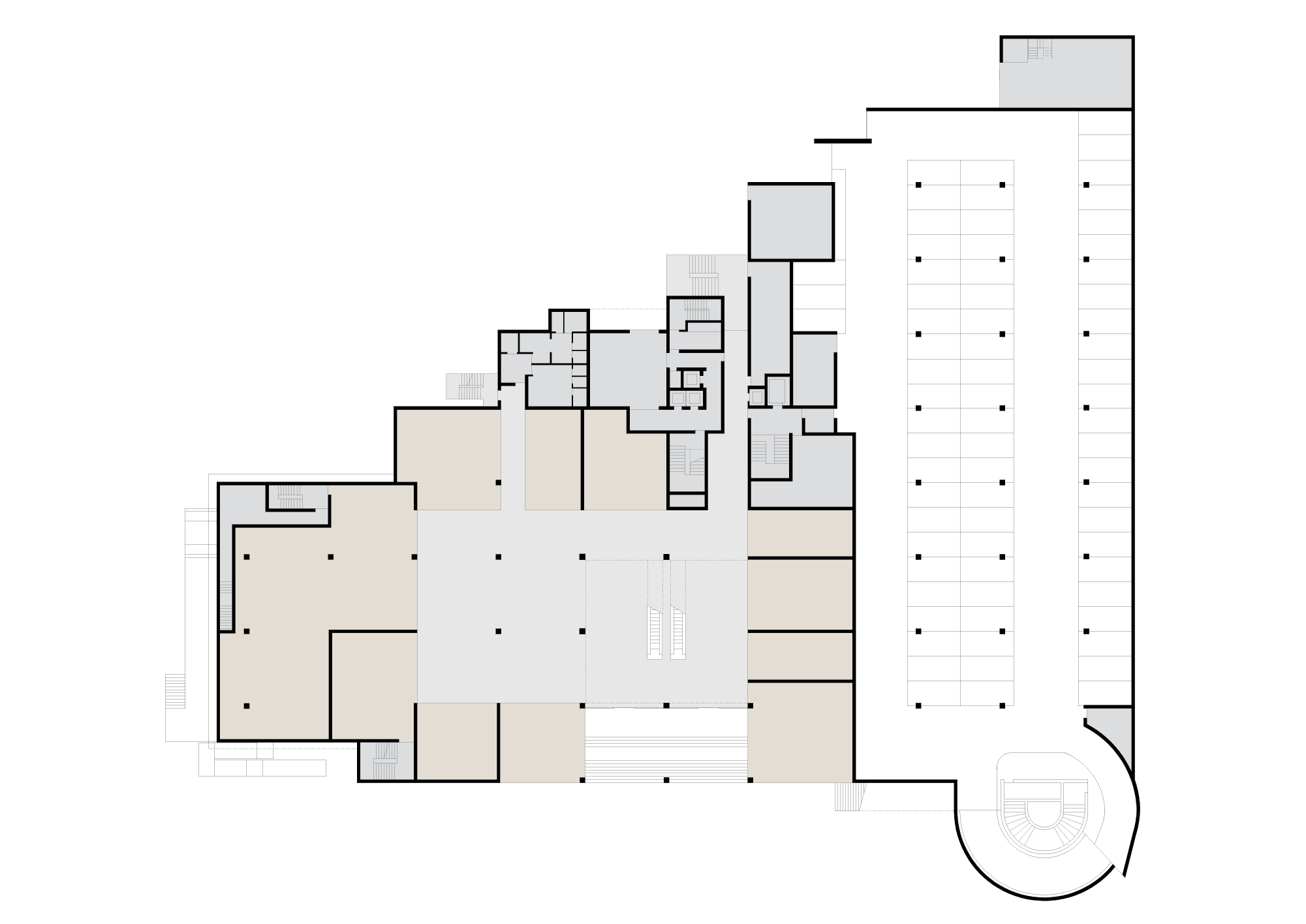 However, to be effective, this revamping should turn around the image of the building and attract better shop brands and more visitors. On the outside, the operation consisted in covering the existing stone façade with a new skin of galvanised metal sheets as a support for a graphic design informing the visitor on the mall’s commercial contents.