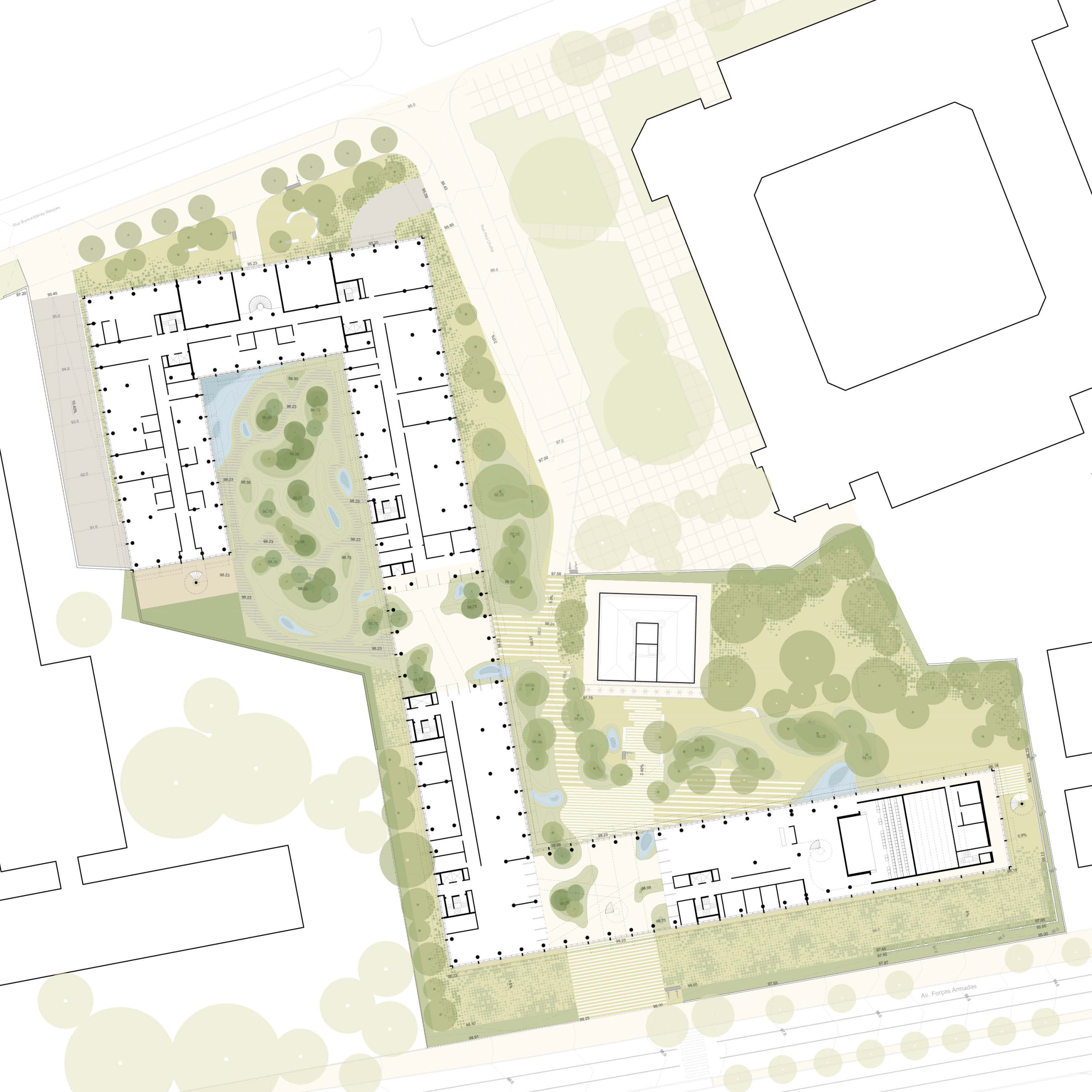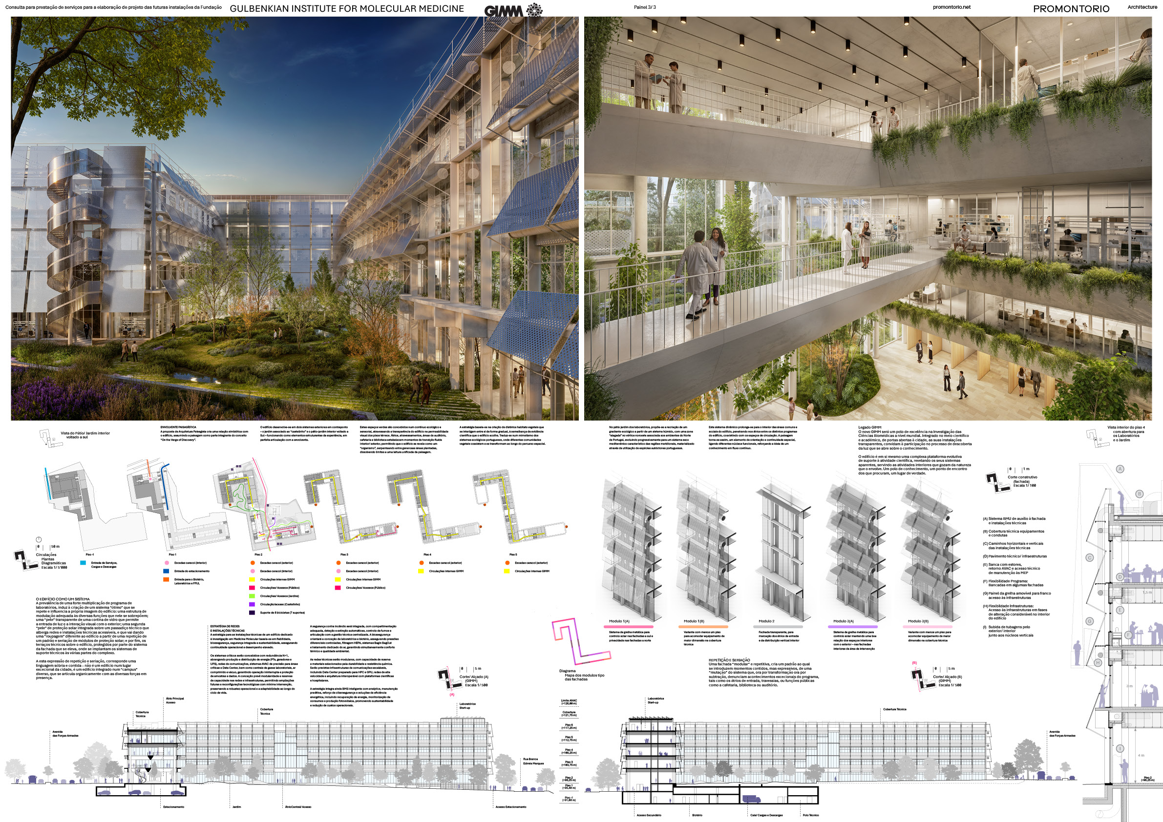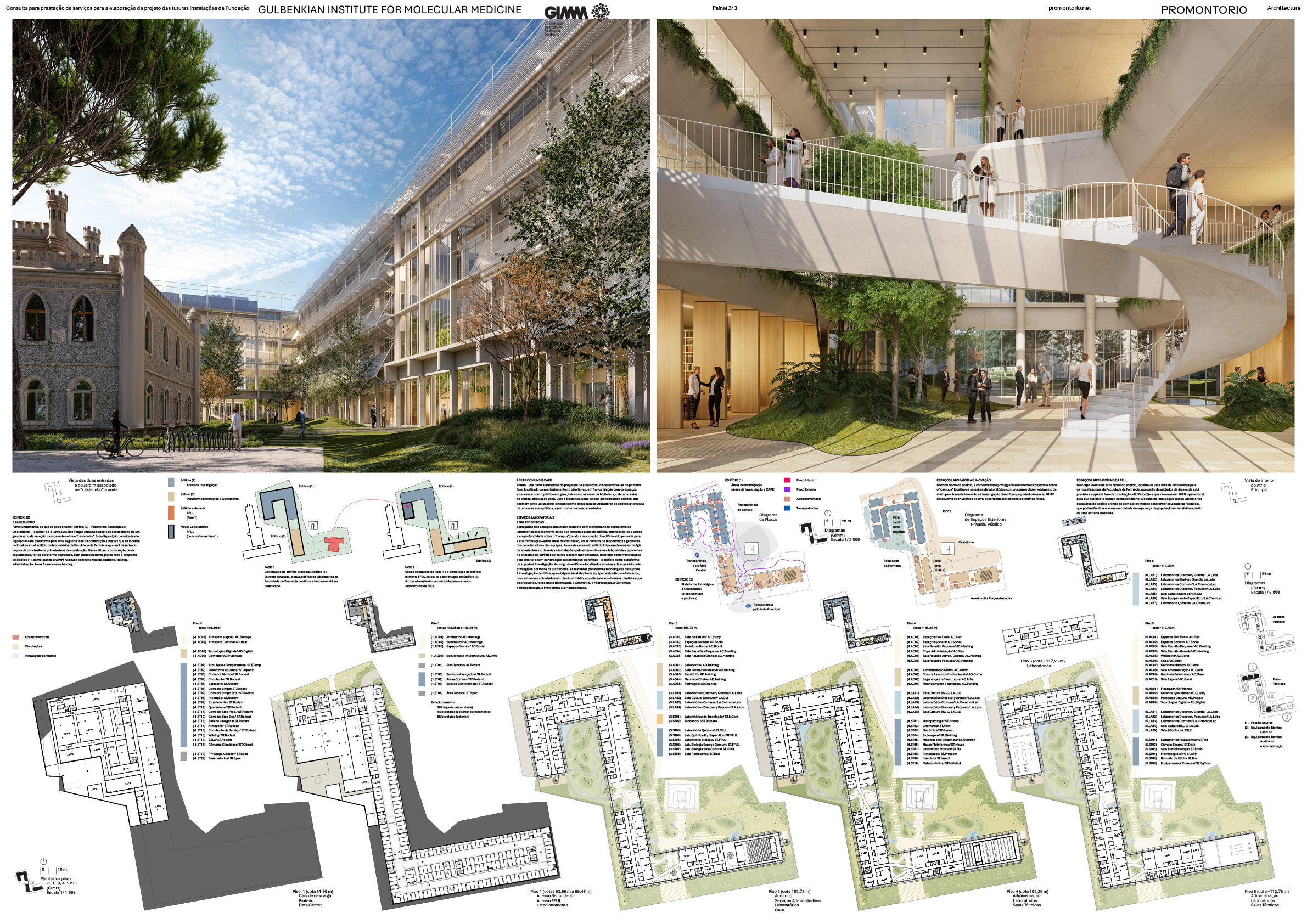 The result of a merger between the Gulbenkian Institute of Science (IGC) and the Instituto de Medicina Molecular João Lobo Antunes (iMM), currently operating in Oeiras and at the FMUL/ULS Santa Maria in Lisbon, GIMM—while presently based across these two original sites—seeks a singular space for the effective fusion of all its capabilities and mission. This space is to be integrated into the Lisbon University City hub, maintaining a strong connection to the Santa Maria health park and the Faculties of Medicine and Pharmacy of the University of Lisbon.