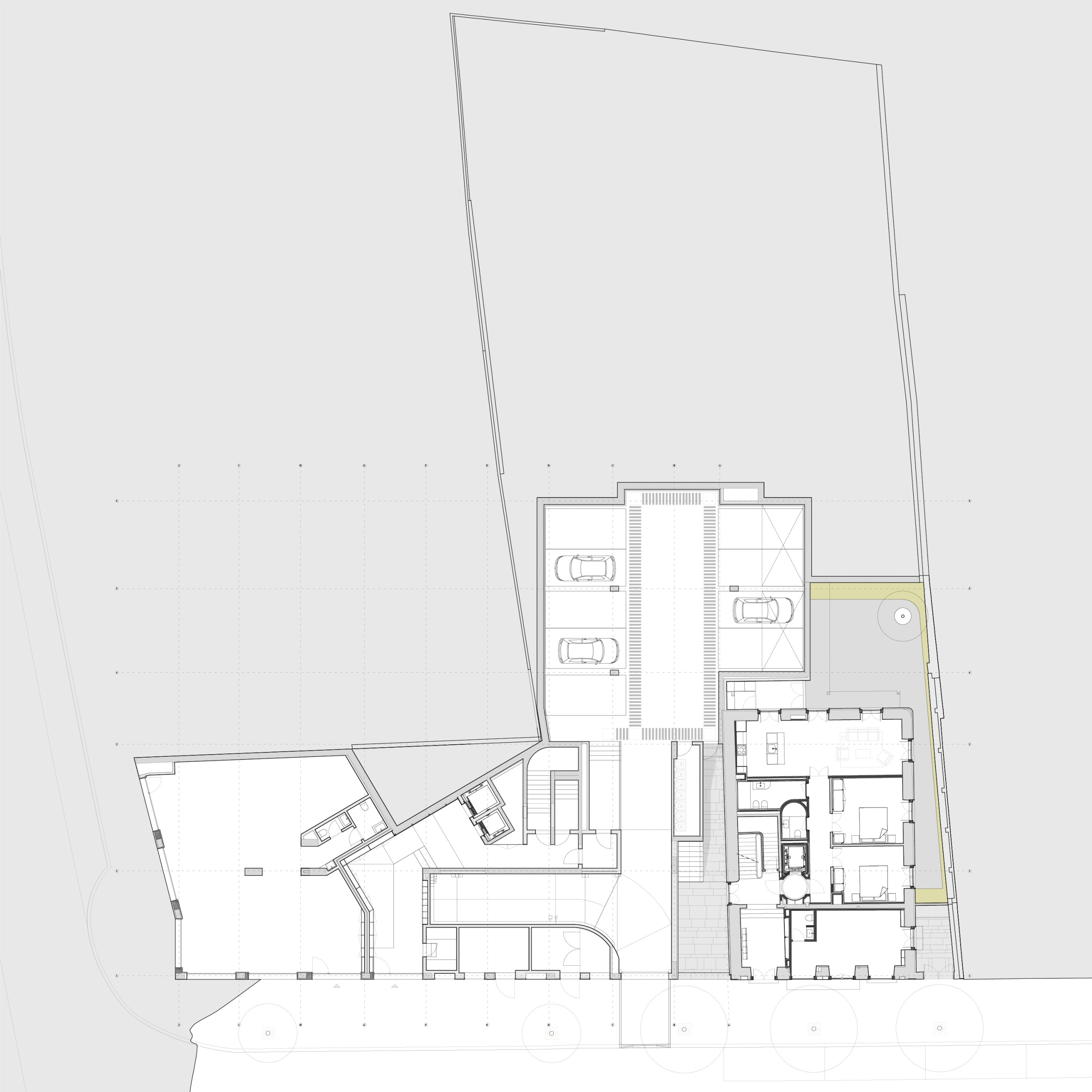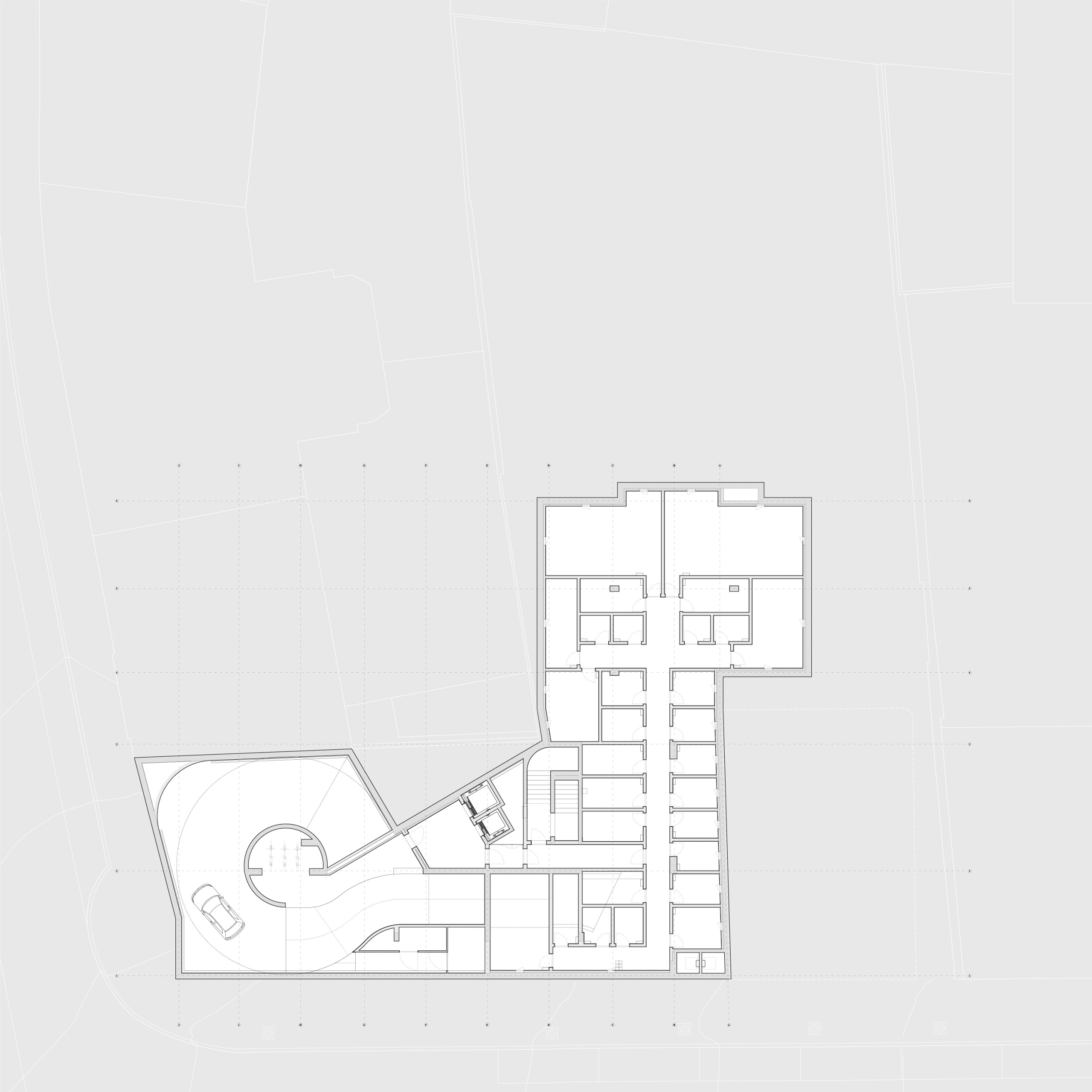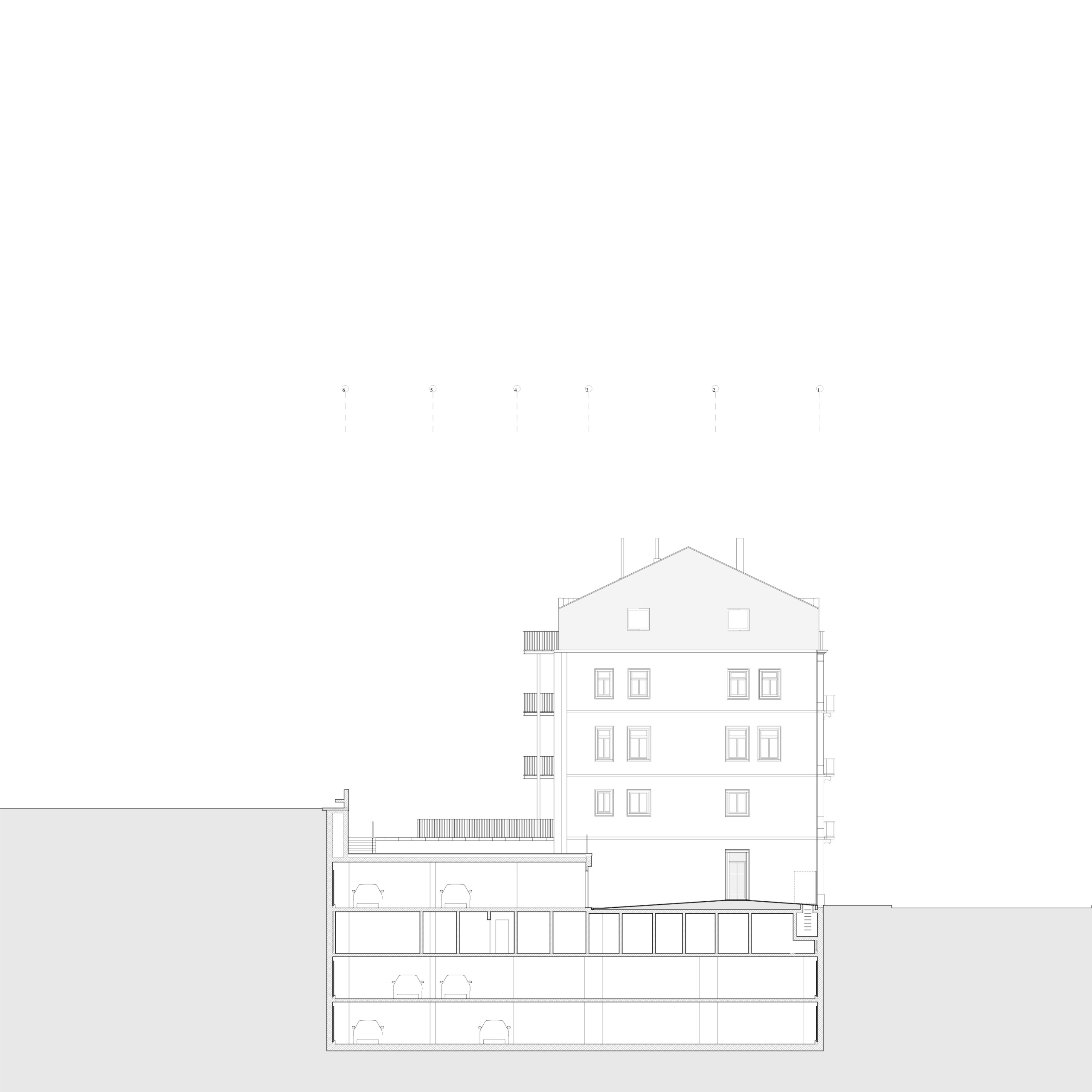 Gross built area: 3,400 sq. m (main building) 900 sq. m (renovation) plus 1,800 sq. m of basement parking