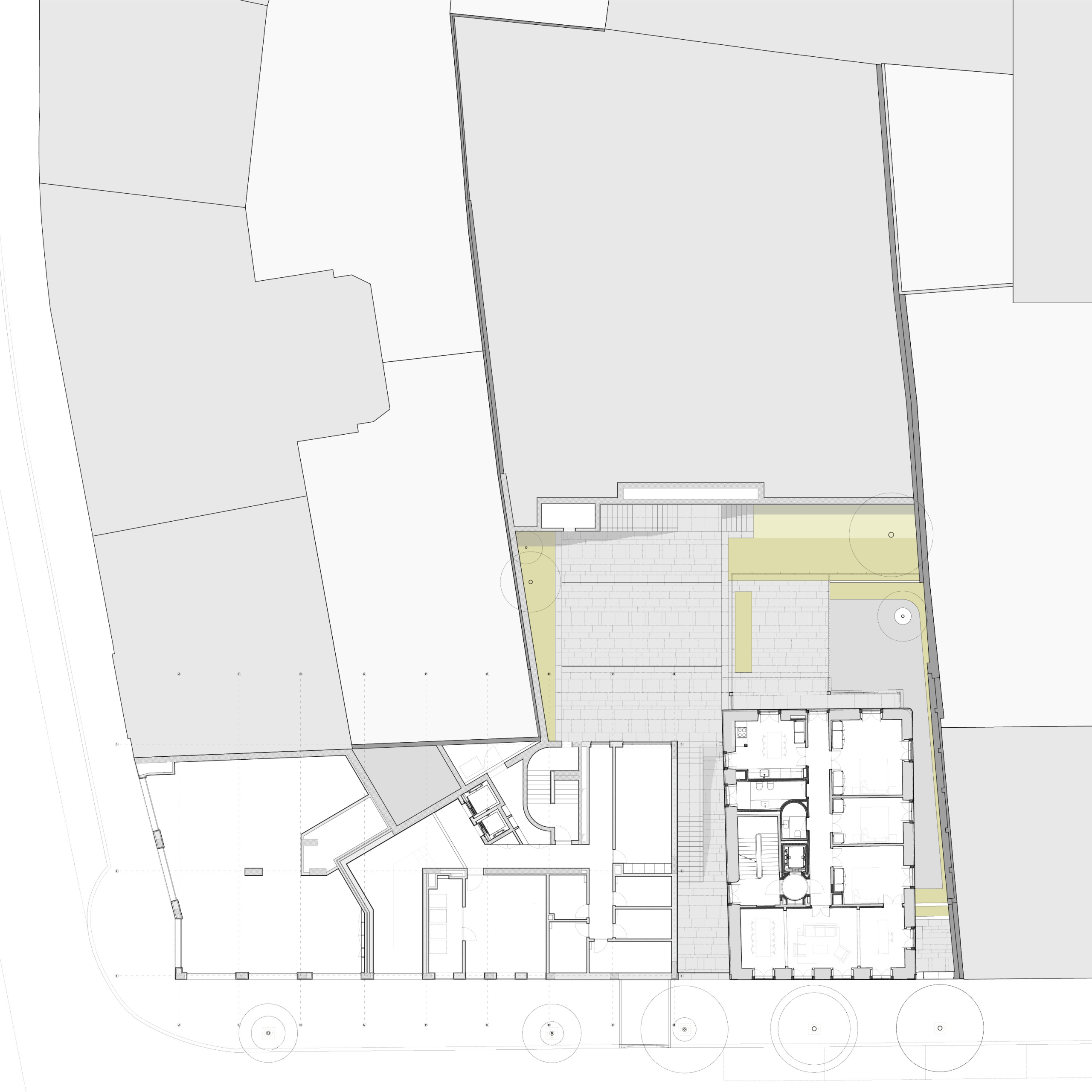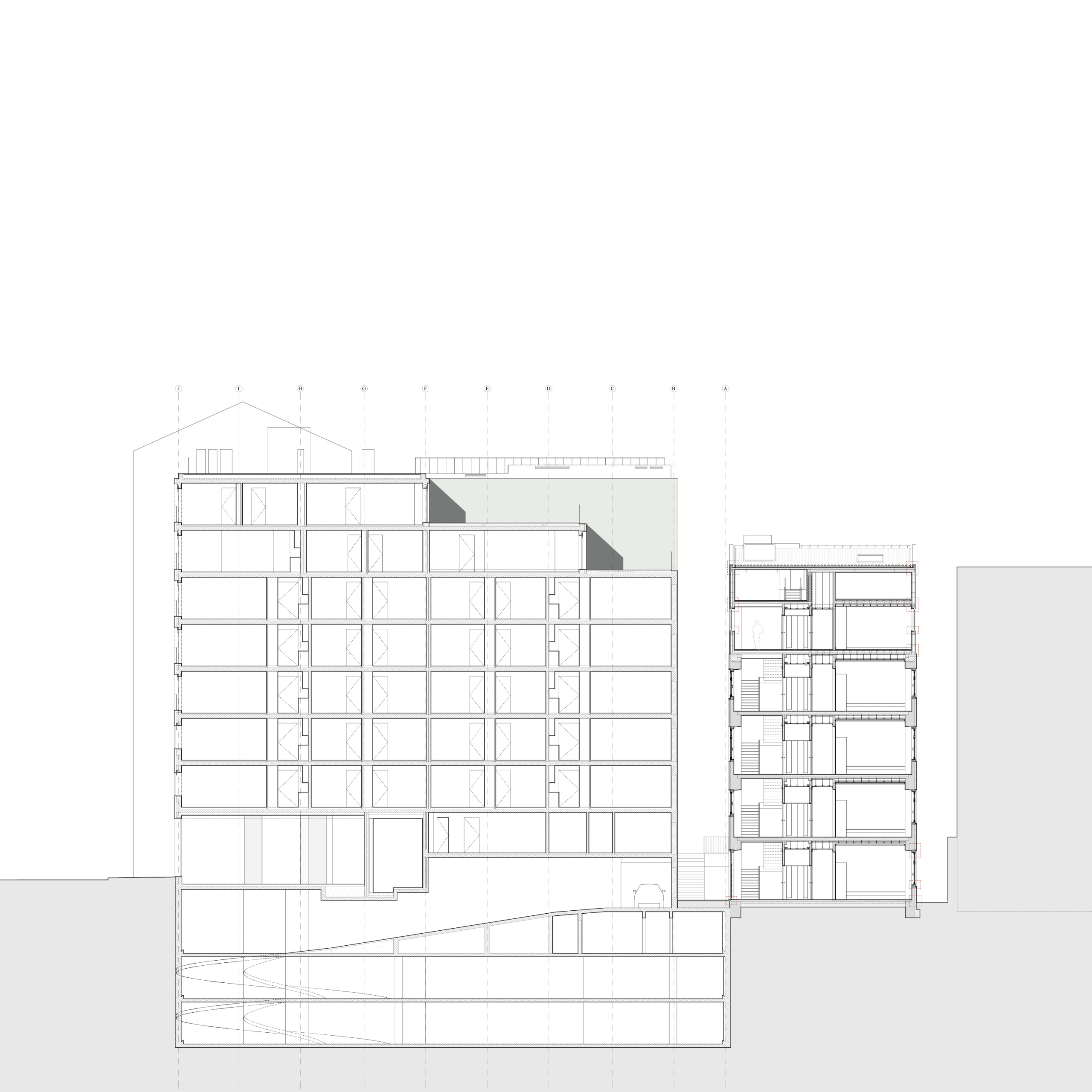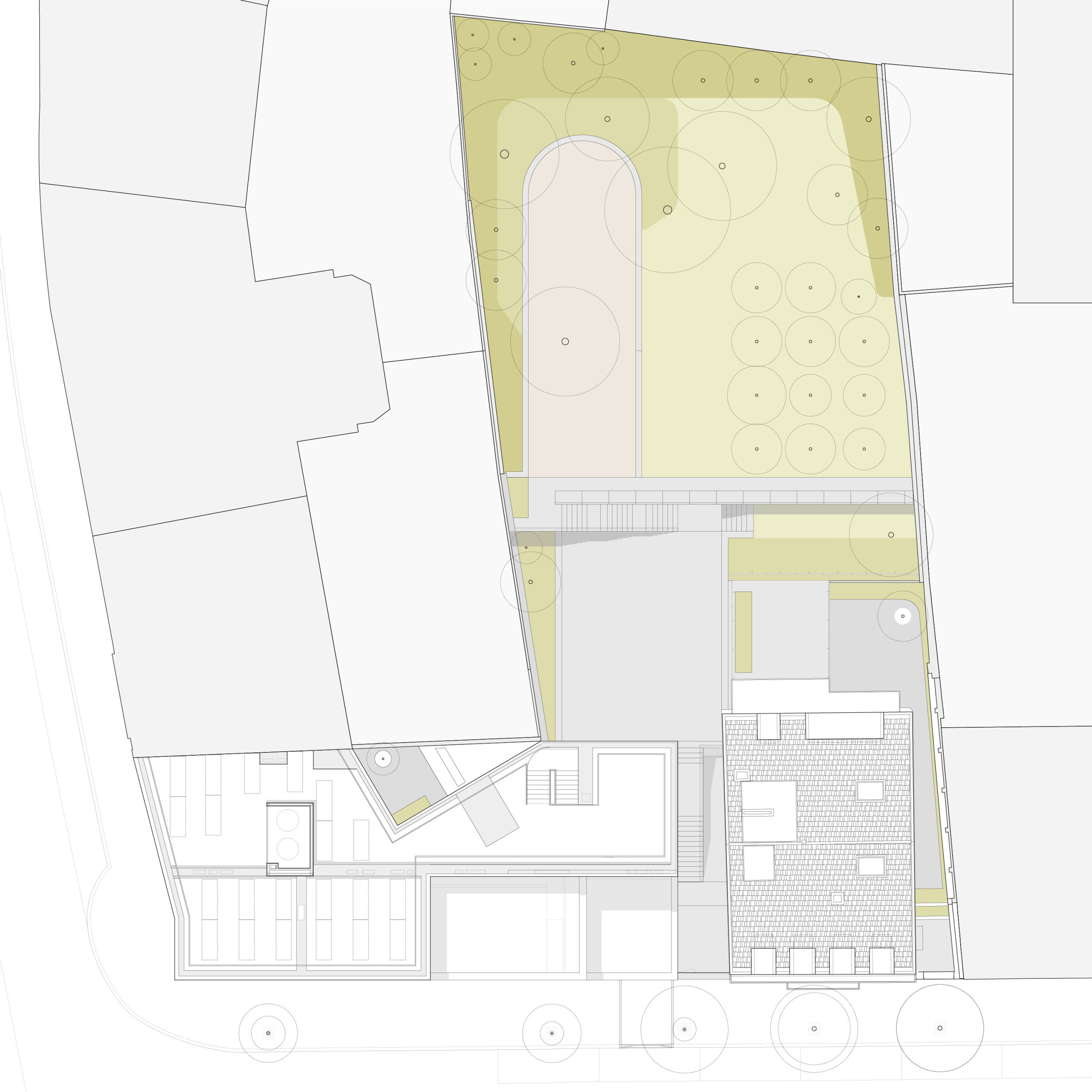 Gross built area: 3,400 sq. m (main building) 900 sq. m (renovation) plus 1,800 sq. m of basement parking