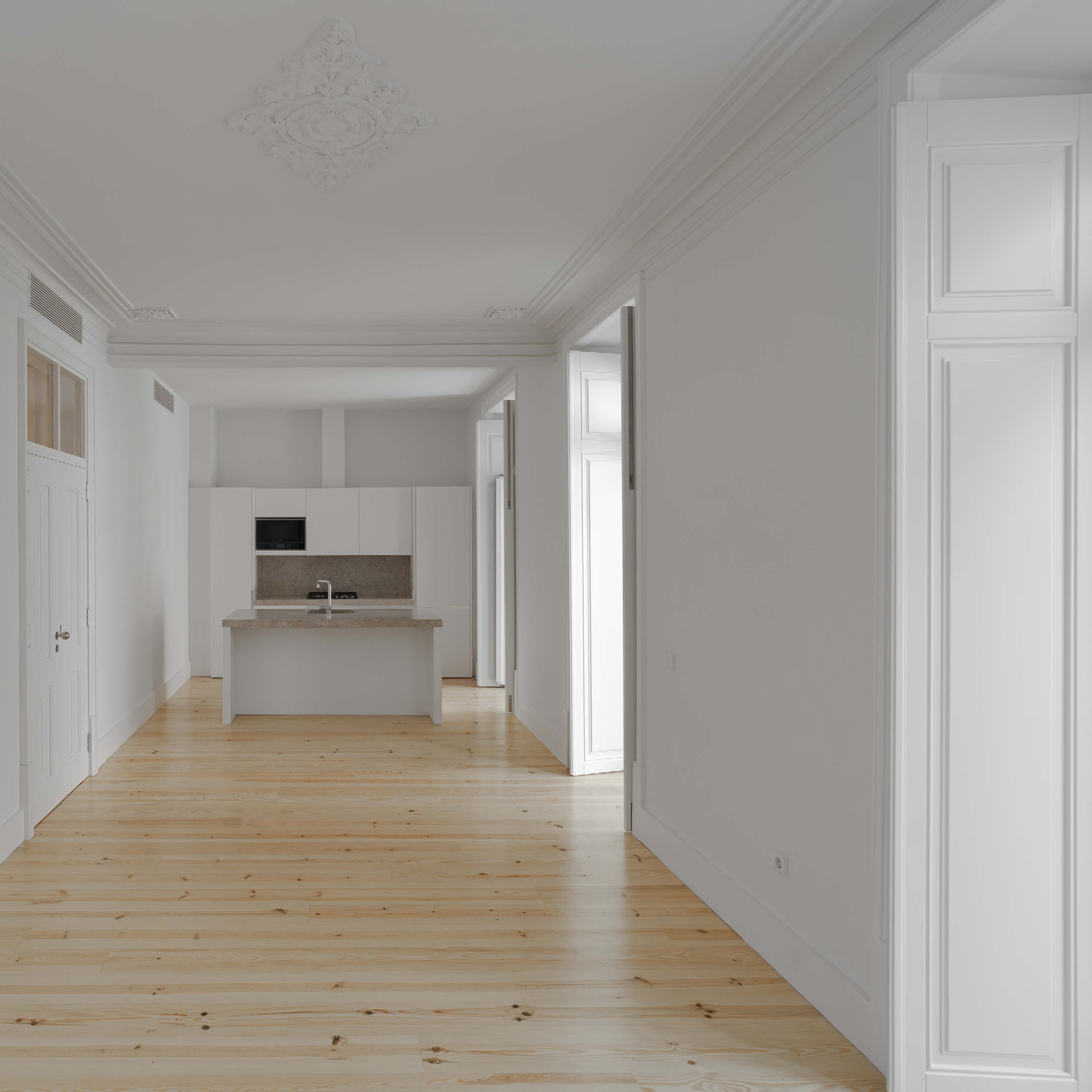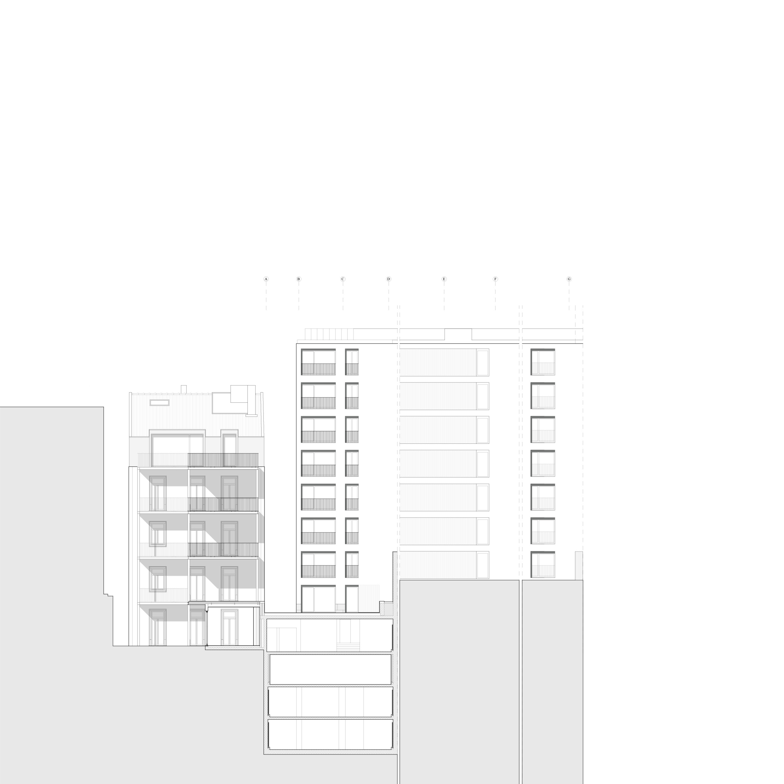 The project is located in Rua Sousa Martins which is a parallel street to the busy Avenida Fontes Pereira de Melo, also known as Lisbon’s central axis. The whole area is part of the Ressano Garcia plan which, from the premises 18th-century Pombaline plan, reconfigured and expanded the plan of the capital in the spirit of Haussmann (circa 1880). With its large perimeter blocks rented by the emerging middle classes, the Avenidas Novas (new avenues) was mostly built and crystalized under the influence of Art Nouveau and Art Deco, — sometimes quite substandard both in terms of construction and design.
