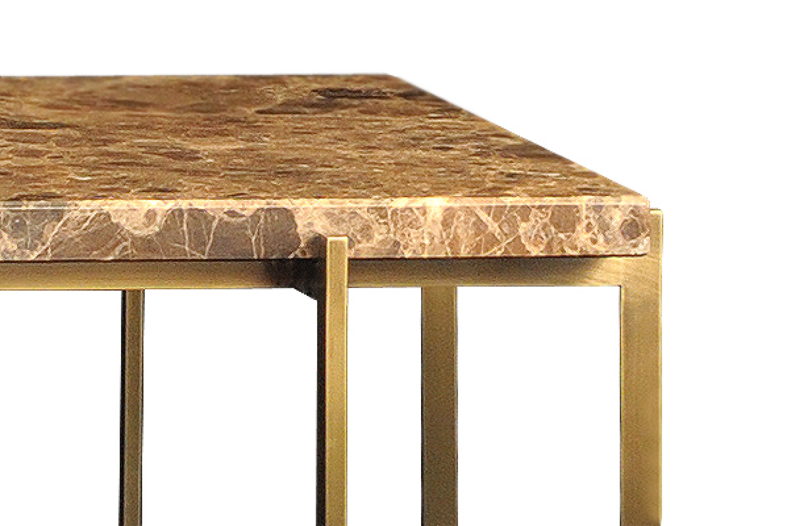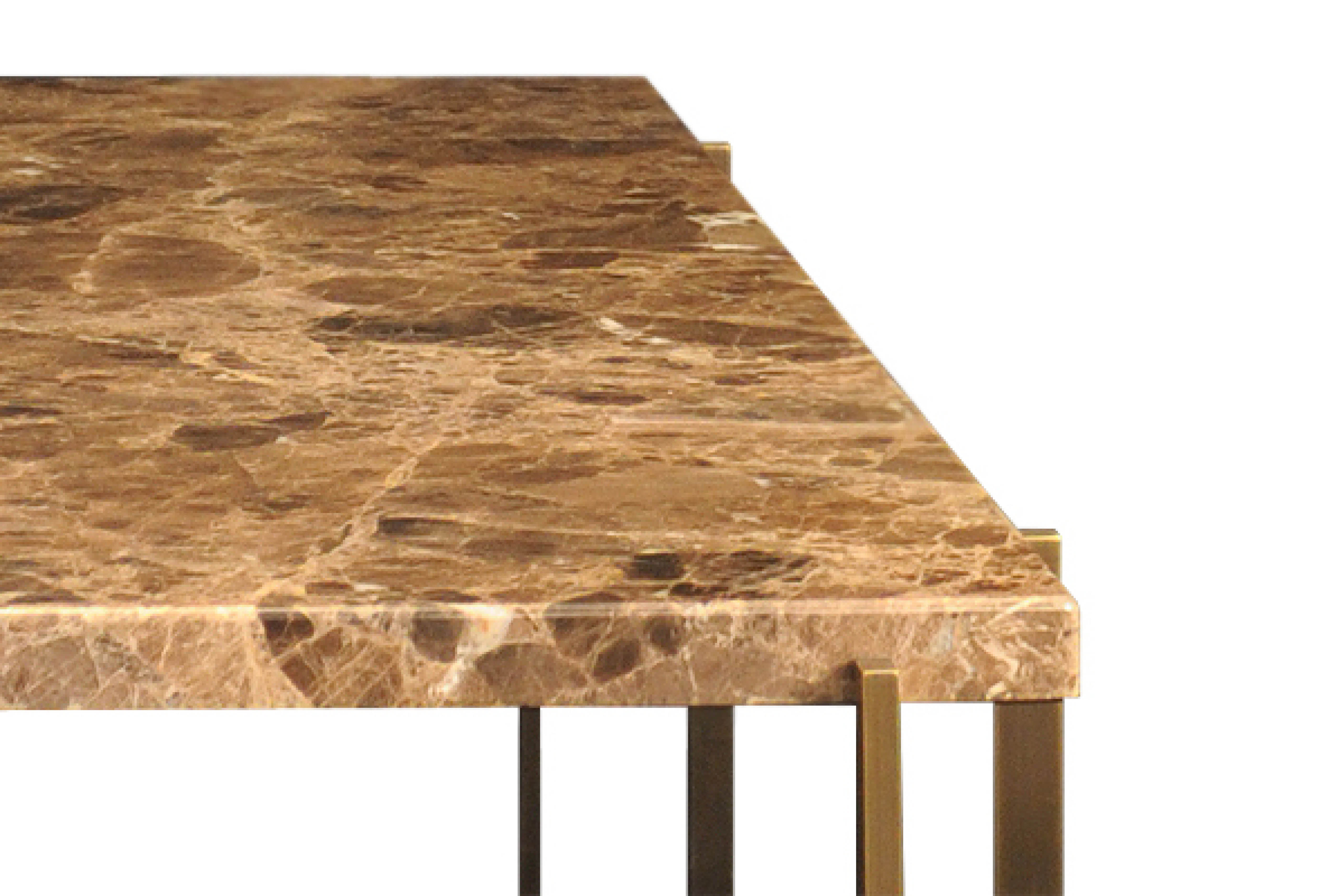 Material: Emperor marble and oxidized brass with gun-barrel finish